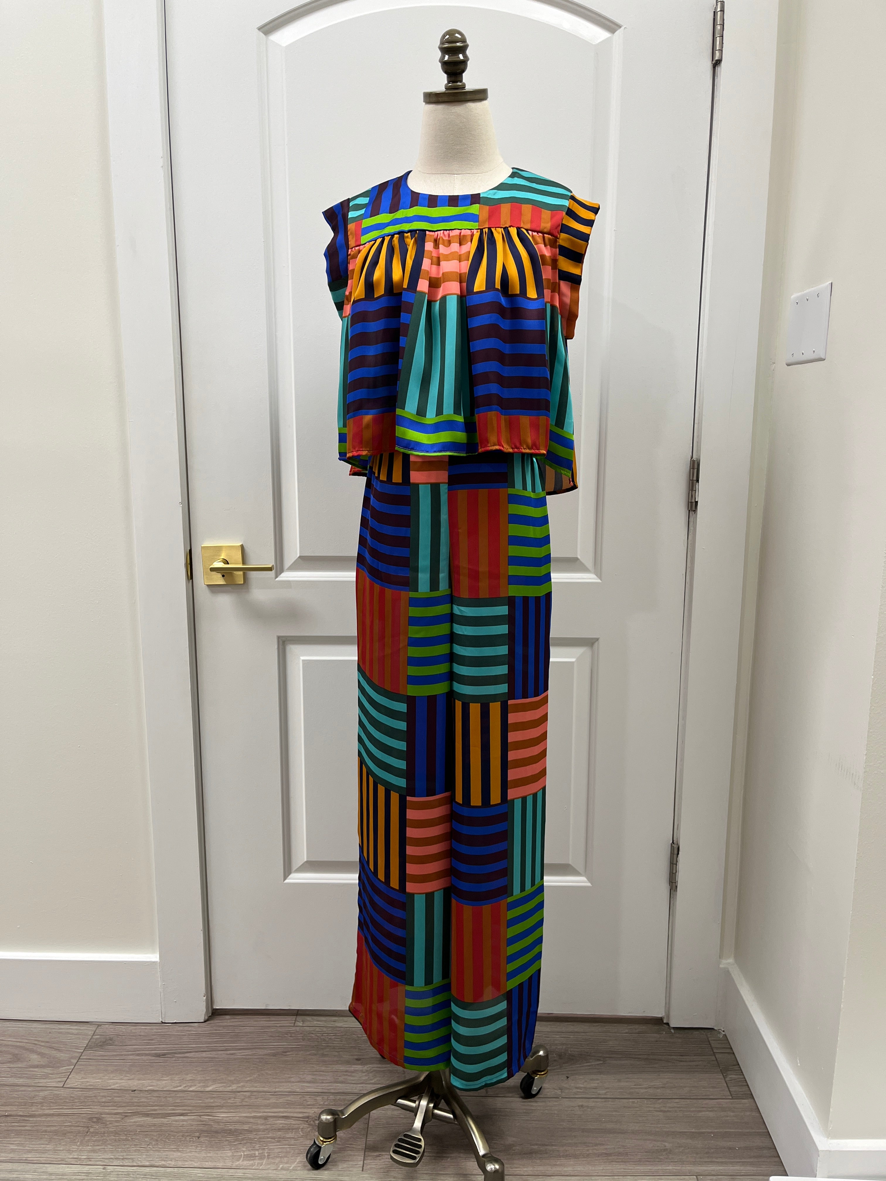 A playful pop of color, these flowy wide leg pants features a mix of vibrant stripes in rich jewel tones and pairs perfectly with the Paige top to create a matching set.