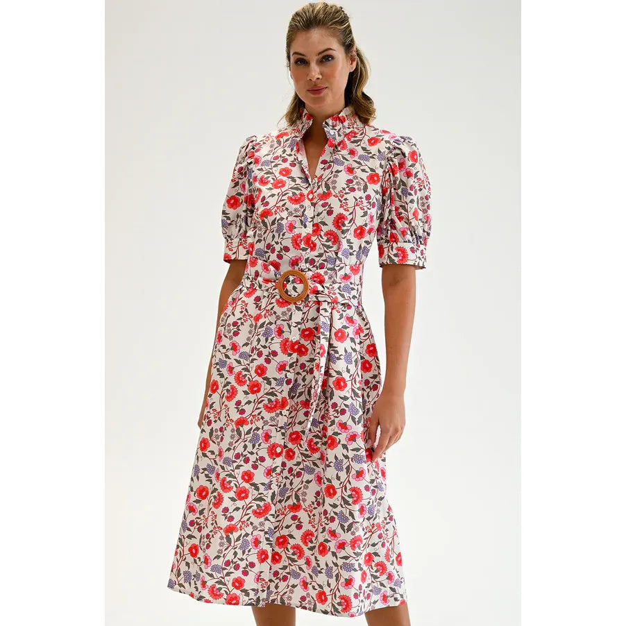Brighten your wardrobe with the Lucella Dress in Red Poppy! Made from lightweight, breathable 100% cotton, this mid-length dress flaunts a cheerful poppy print and a button-front design. Whether you want to cinch it with the removable belt for a chic, tailored look or leave it loose for carefree comfort, it adapts to your mood. Plus, handy side pockets keep essentials close while the flattering cut ensures you’ll turn heads wherever you go.