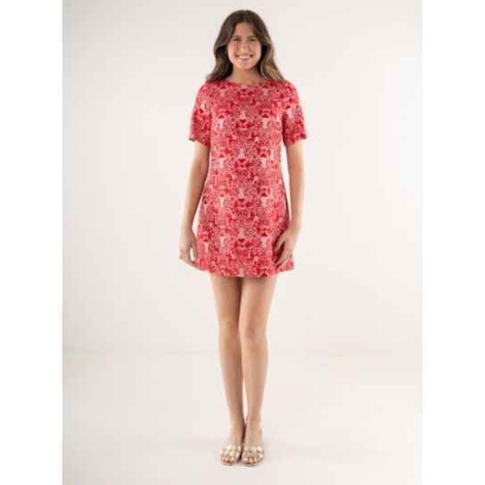 The Royale Shift Cheeky Cheetah dress showcases a striking cheetah print with short sleeves and gold button accents. It features a gold zipper along the back for a secure fit and added detail, making it a bold choice for any wardrobe.