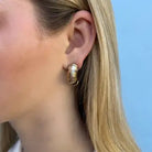 The Harbor Island Hoops are gold Bamboo hoop earrings. They are 1" in length and 7/16" in width. They have Post Back Surgical steel posts.