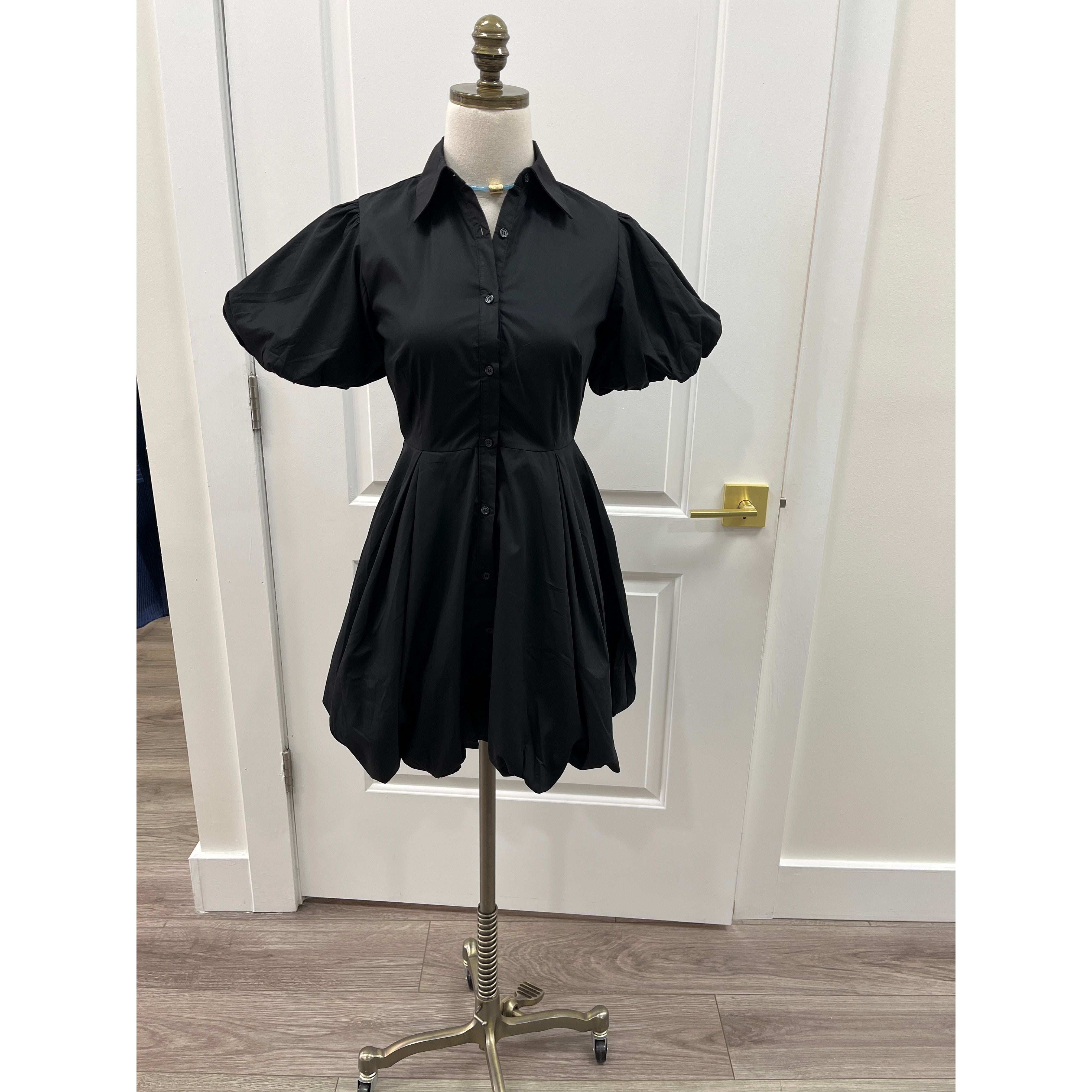 The Sara Grace Bubble Hem Dress offers a structured yet playful silhouette with its distinctive bubble hem. It features a classic collared neckline, a button-down front for easy wear, and puff sleeves that add a touch of drama, great for both casual and dressier occasions.