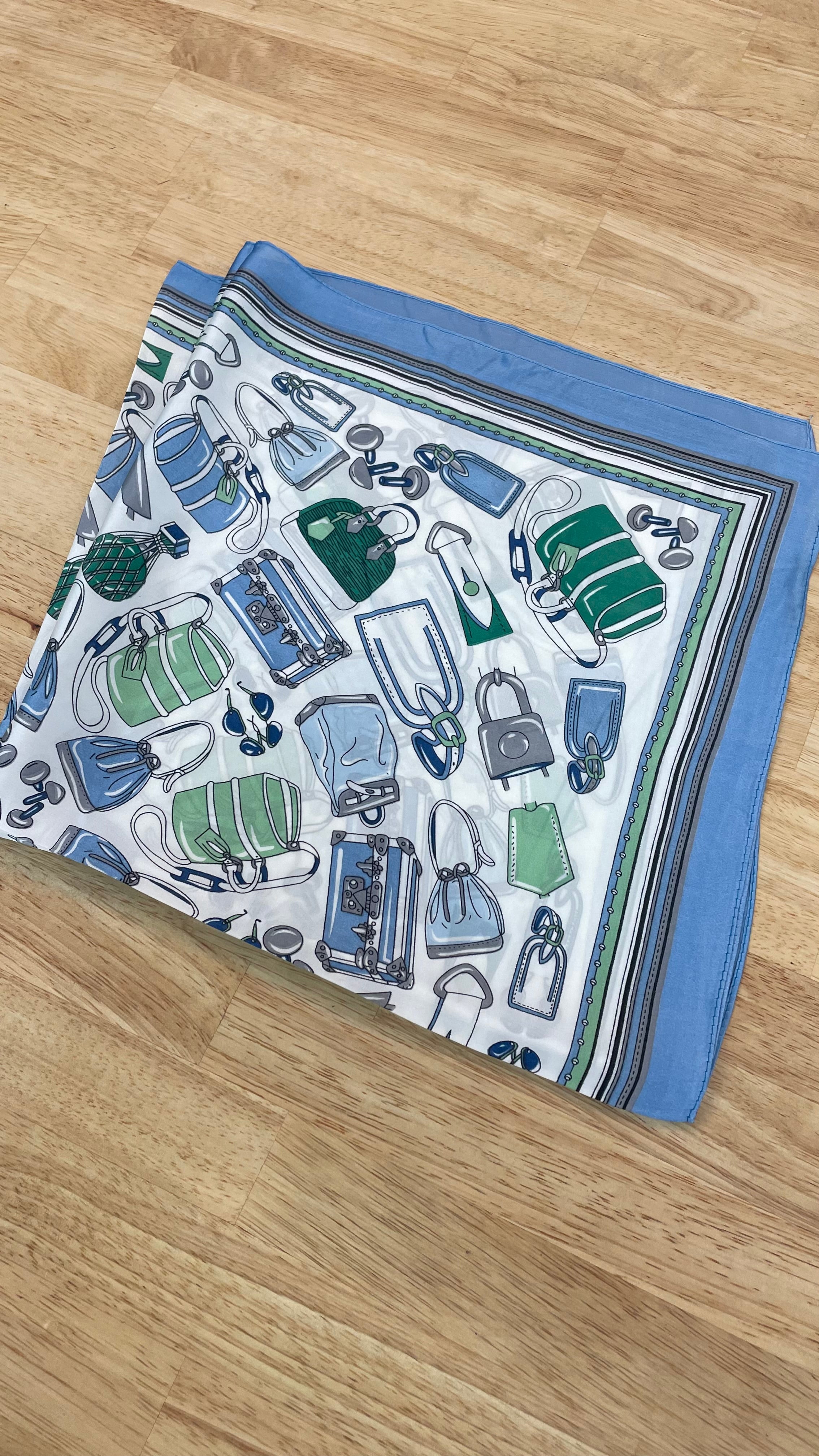 This luxurious fashion scarf features an elegant print and soft breathable fabric, perfect for adding a splash of color to any outfit. Measures 27 inches by 27 inches.