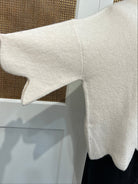 The Sammy sweater has an oversized fit with 3/4 length sleeves. It has a crew neck and a scalloped detail on the sleeves and along the bottom hem. This sweater would be great paired with your favorite pair of jeans or dressier pants!