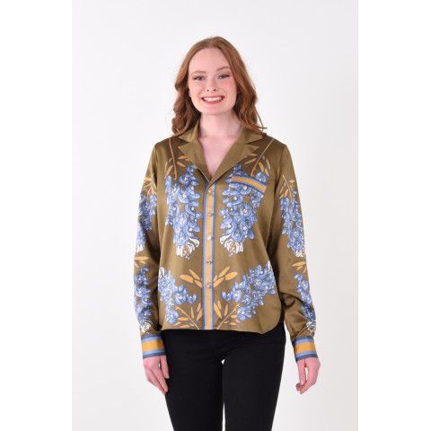 Crafted in a silky fabrication, this top features a classic fold collar, front signature button closure, and a relaxed yet slightly tailored silhouette. Designed to pair effortlessly with the matching Slumber Pant, it creates a striking set that blends southern charm with a modern, elevated edge.