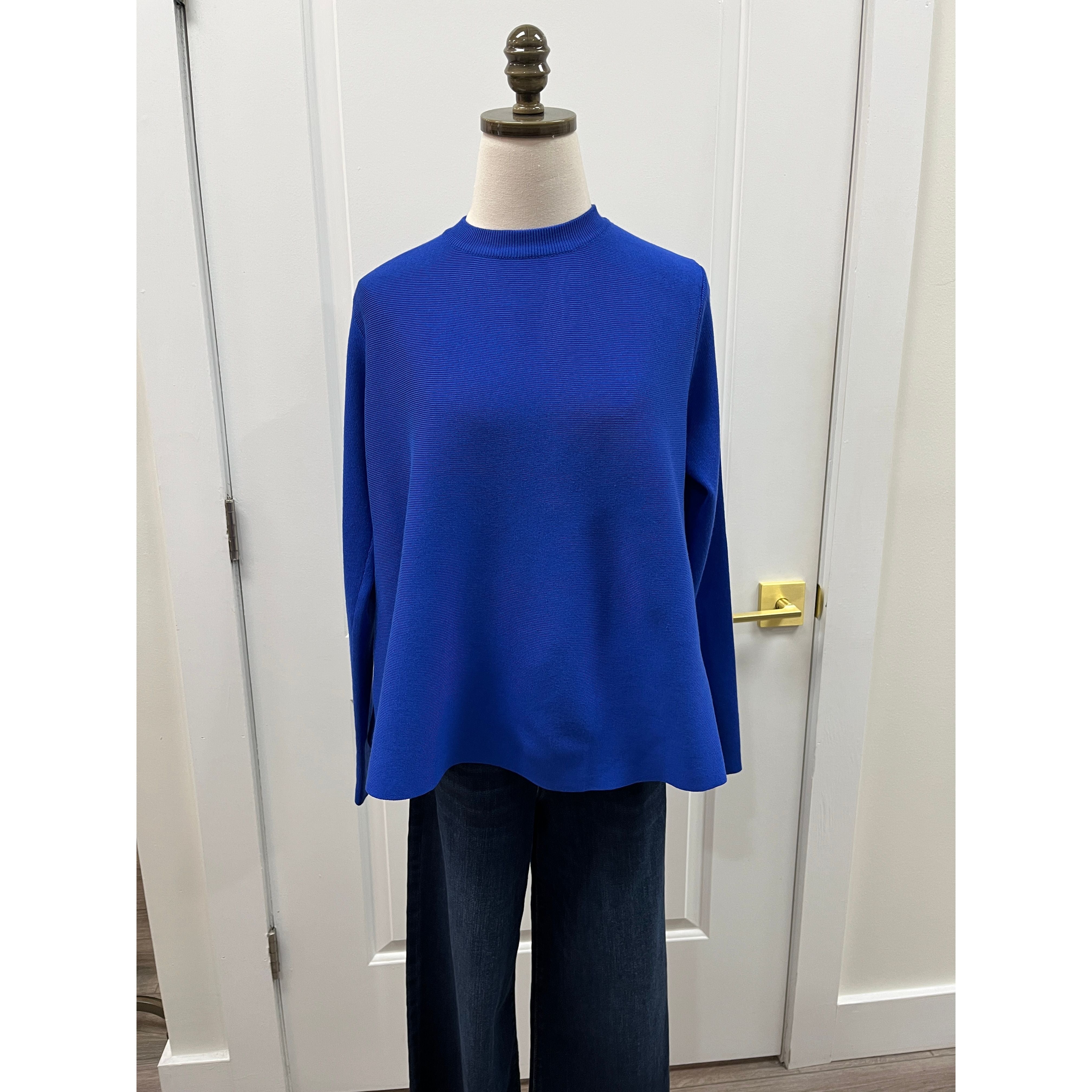 Put this sweater on repeat! We have had this silhouette before and we love it. The swing bottom is flattering and covers just enough. This season's teal cover is gorgeous.