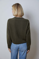 Get ready to fall into luxury in this Design History cashmere sweater.  The color is a deep, rich moss green.  The V neckline gives it a boyfriend sweater feel.  You will wear this sweater to lunch with friends and then come home a sit by the fire.  You will never want to take it off.