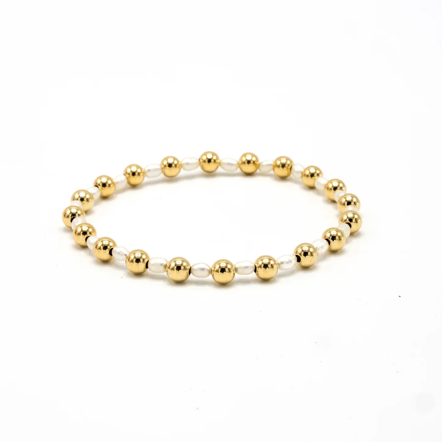 14k gold filled beads with fresh water pearls stretch bracelet. Wear single or stack it.
