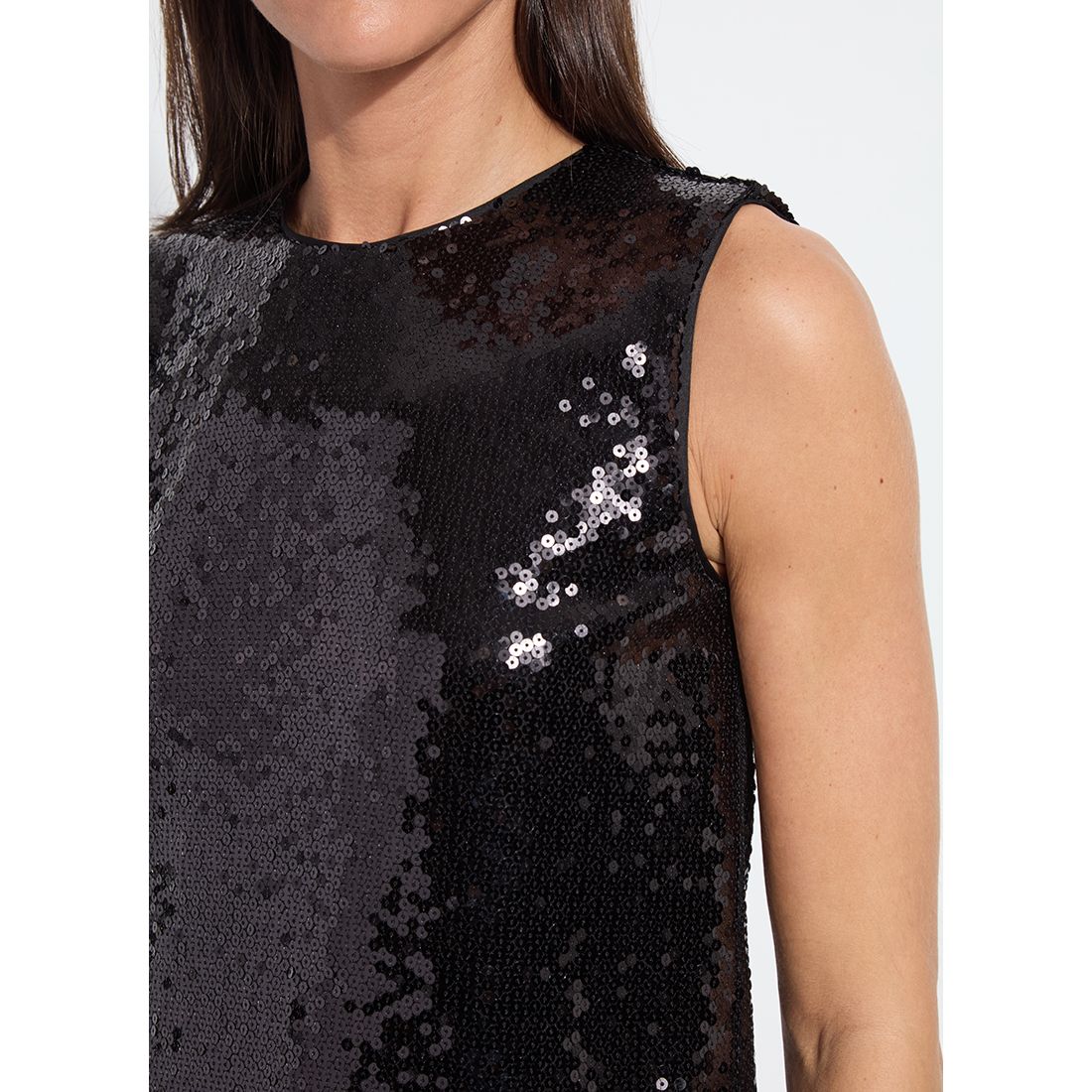 The Adaline Sequin Shell is a sleek black tank top adorned with shimmering sequins for a subtle, elegant sparkle. Perfect for layering or standing out on its own, this top adds a touch of glam to any outfit while maintaining a versatile and comfortable fit.