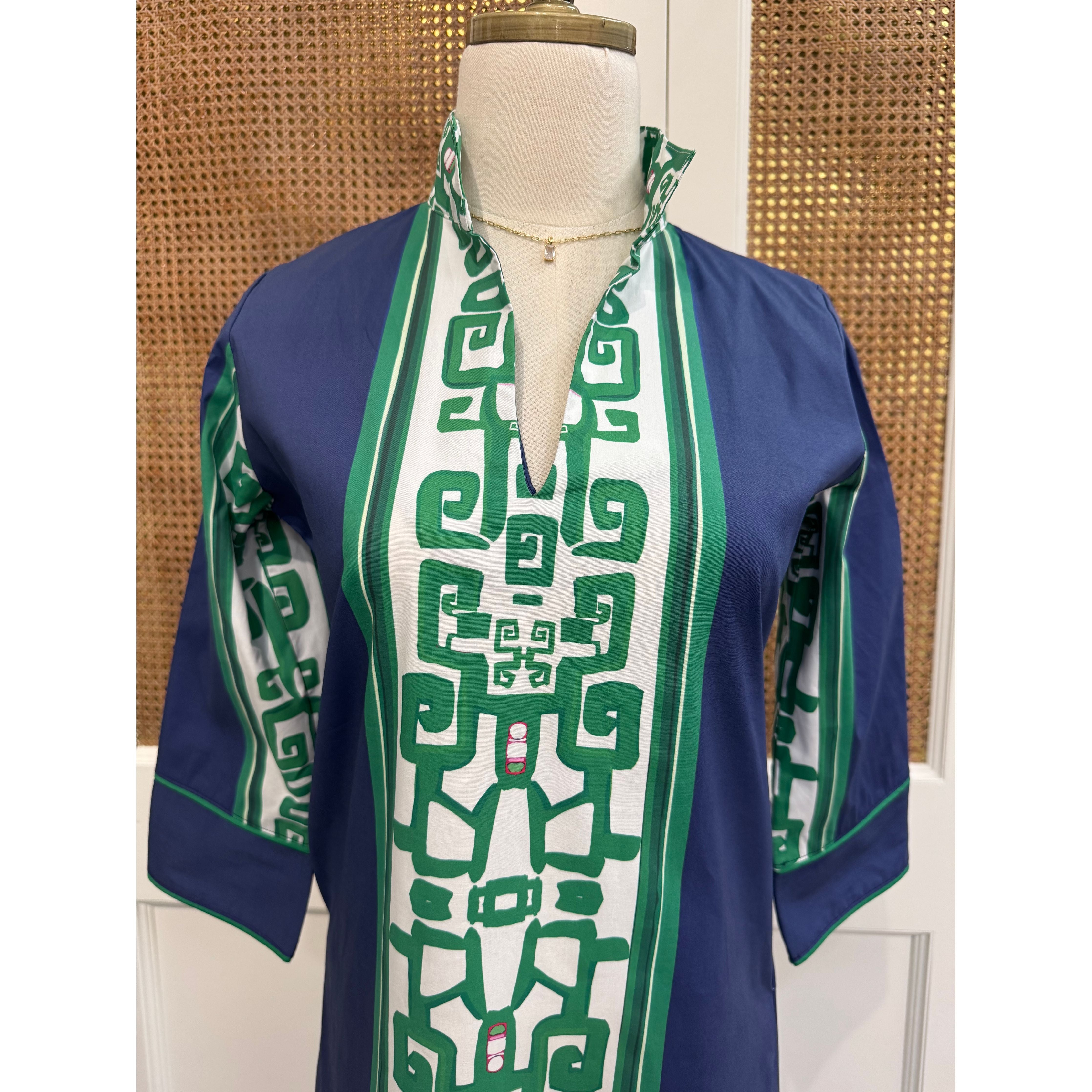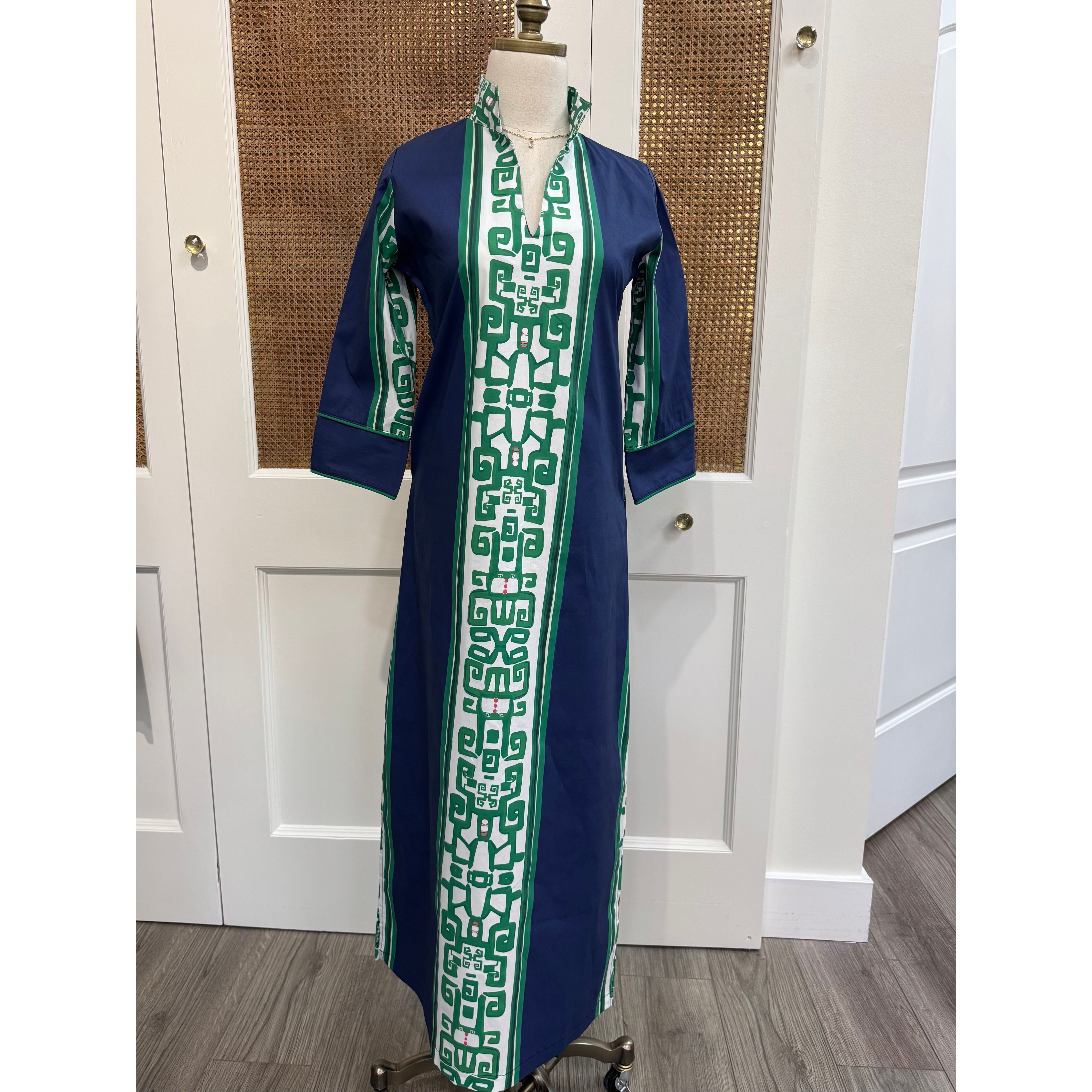 The Heiress Blue Bouvier is a nod to an American icon. The rich blue color is beautiful. The gorgeous trellis detail down the front is classic with a little mid-century vibe.