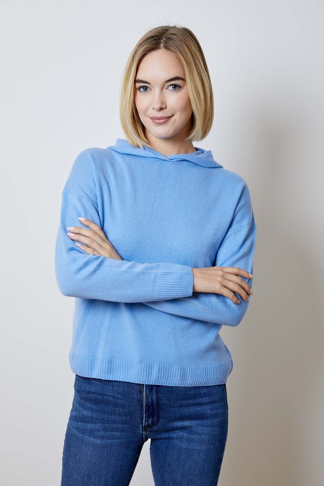 The Nell Sweater is a pure cashmere hoodie with a relaxed fit, offering warmth and softness in a classic design. Ideal for casual wear, this sweater combines luxury fibers with a simple style that complements any wardrobe.