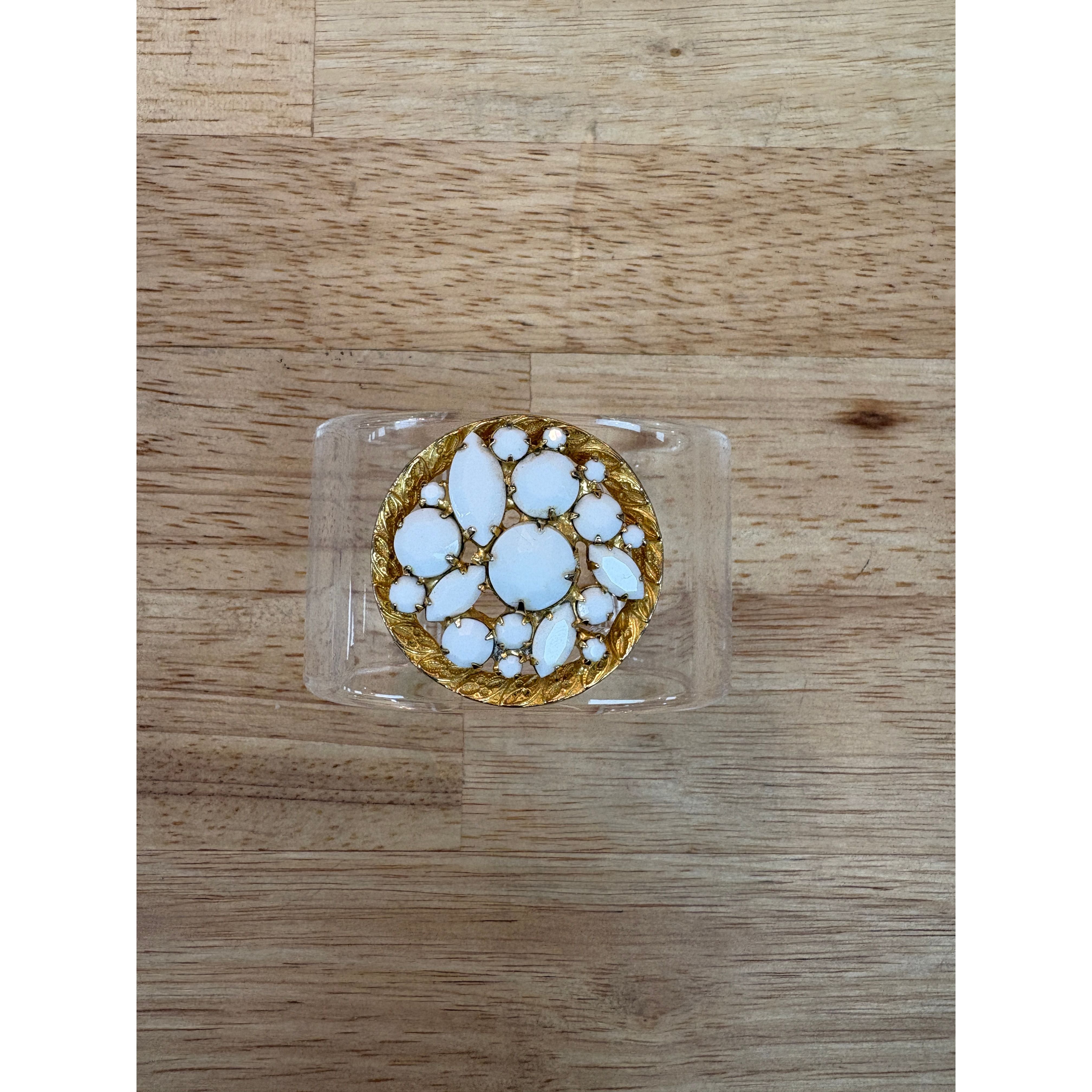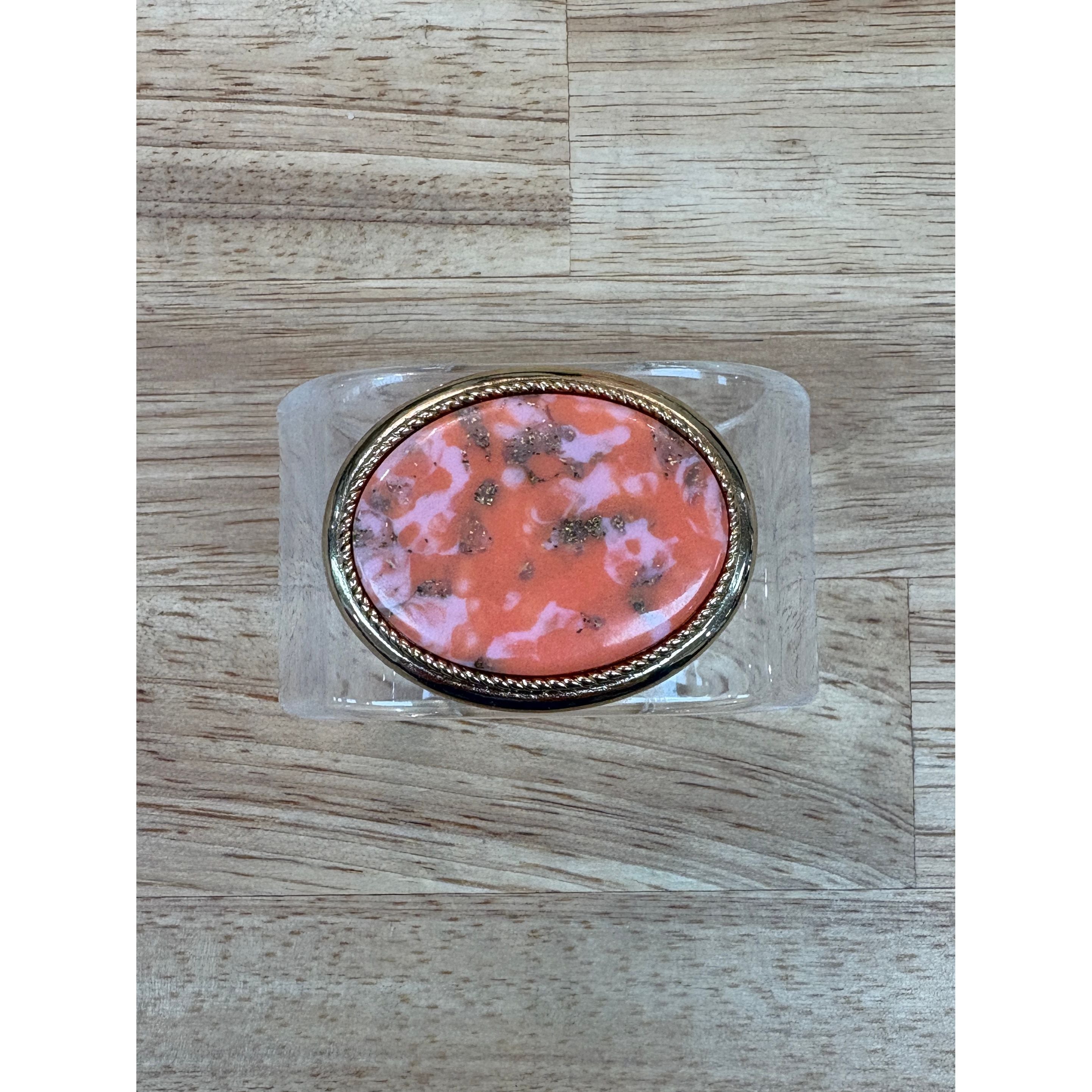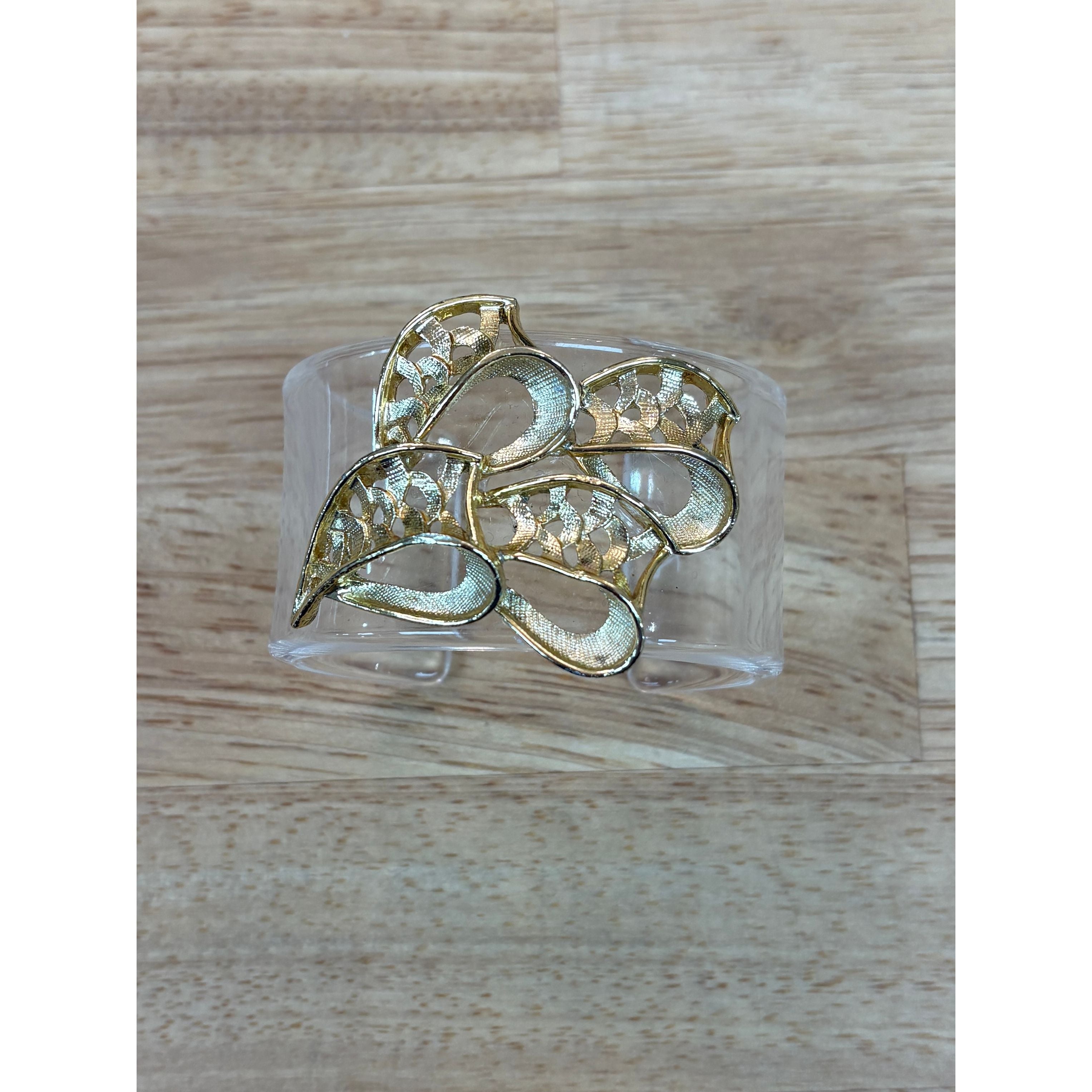 These acrylic and metal cuffs from JT Vintage are handmade, using vintage gems like brooches, lockets, clip on earrings, cuff links, and pendants. Each gem is attached with waterproof epoxy/resin glue to an acrylic or metal piece. These are one size fits most.